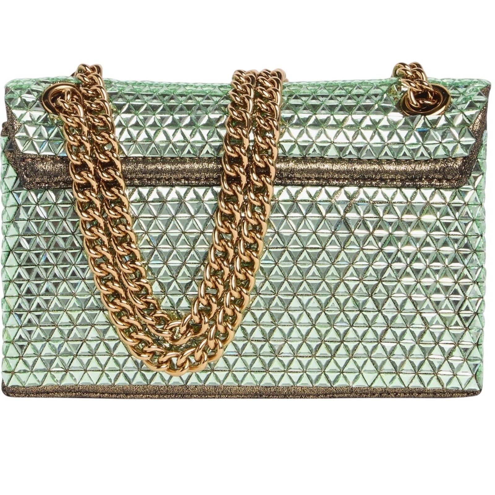 geometric design dazzles the monochrome fabric defines a mini crossbody bag featuring logo-engraved lock hardware and topped with a convertible chain strap.